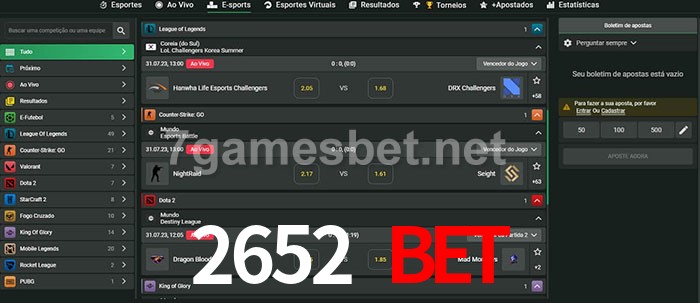 O 2652 Bet oferece uma grande seleção de opções de apostas em e-sports com probabilidades competitivas